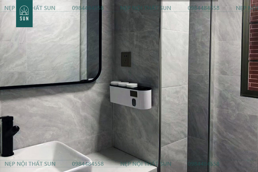 Sau đây là những chia sẻ về cách sử dụng gam màu tối cho tường phòng tắm kết hợp với nẹp trang trí